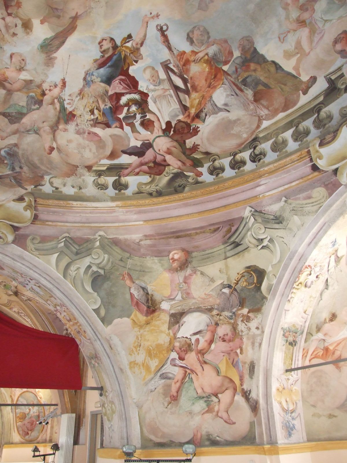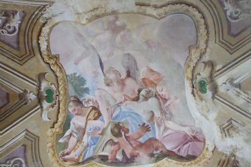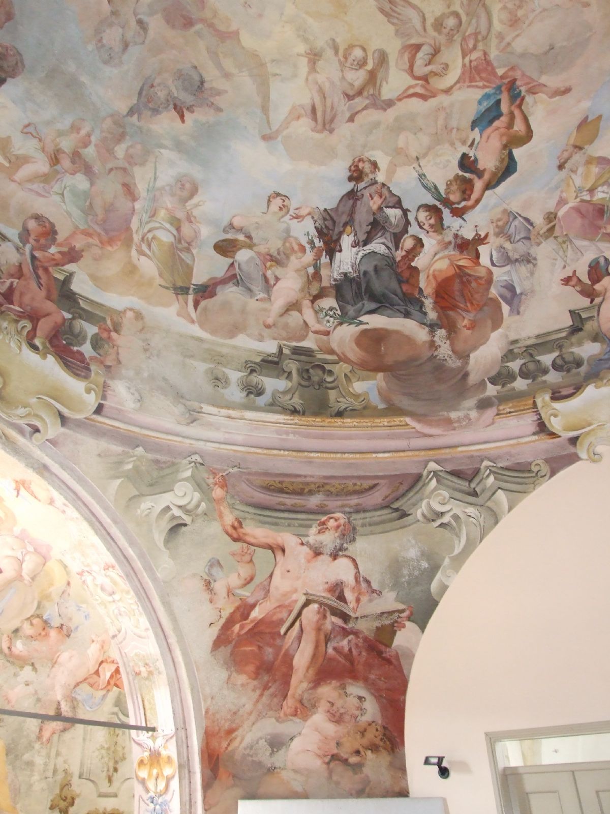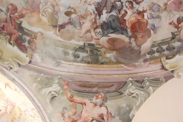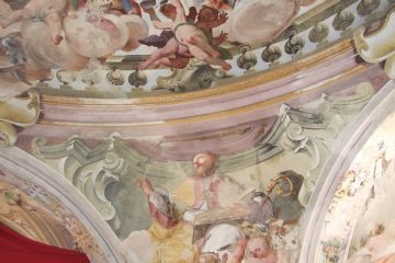 Nell'ex chiesa sono presenti ben conservati gli affreschi del 1700: opere di Johan Tanisch che tra il 1736 e il 1740 realizzò la cupola e di Antonio Orgiazzi che nel 1746 completò gli affreschi.