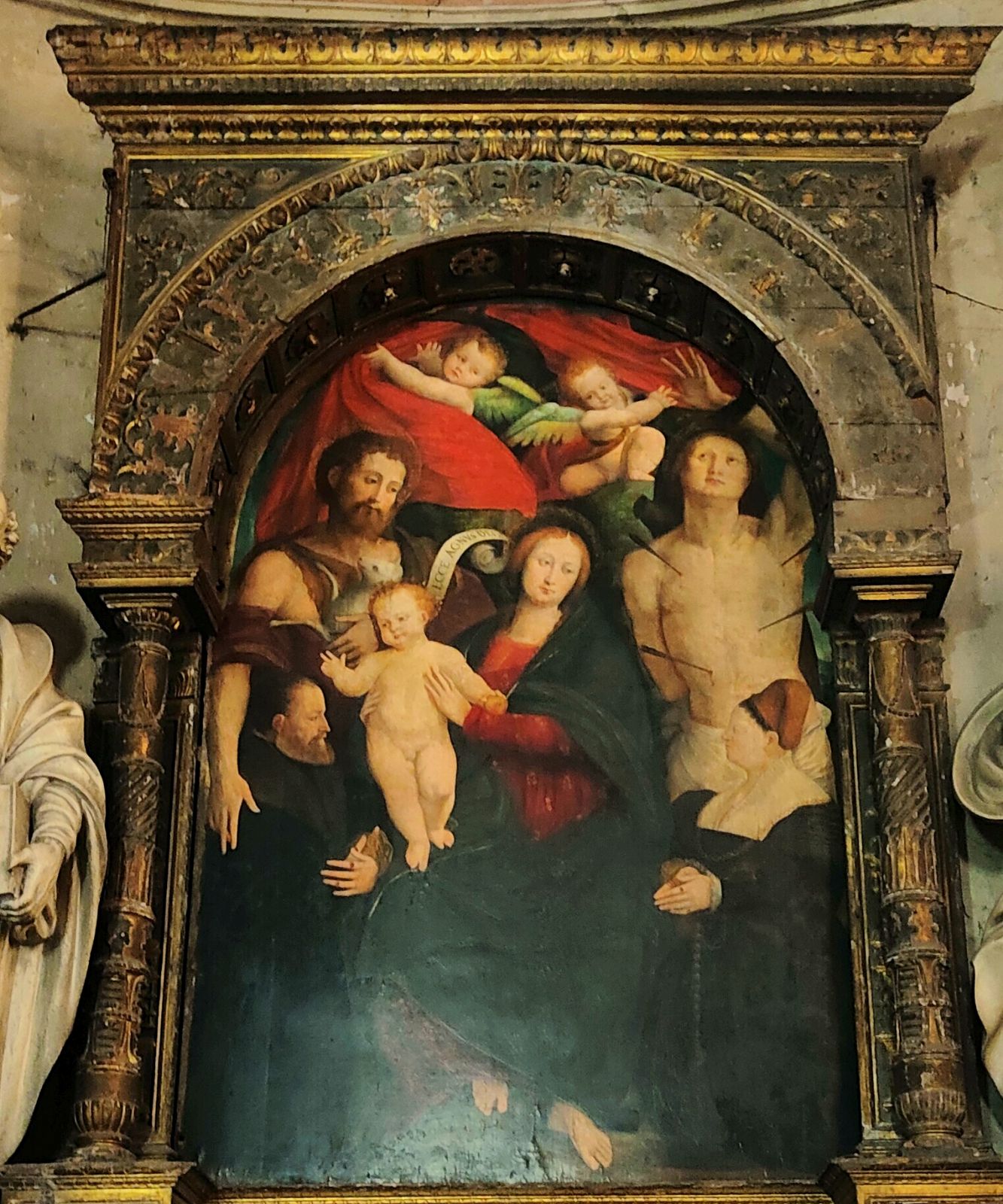 Nel 1681 era annesso all’altare il beneficium sub titulo B.V. de Cintura, mentre nel 1747 è attestata l’omonima confraternita.